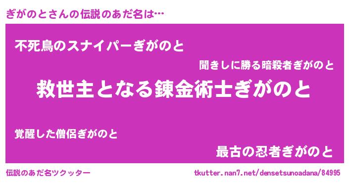| 意味不明あだ名 | 『住所不定無職ぎがのと(86歳)』 |