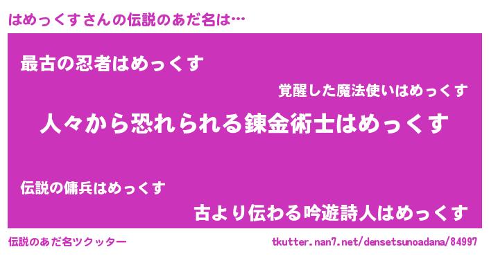 | ヒーロー風カッコイイあだ名 | 『正義の使者はめっくす』『仮面ハメダー』 |