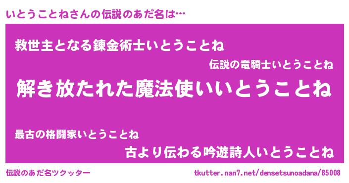 | 女子向けラノベタイトル風あだ名 | 『闇のいとうことね』 |