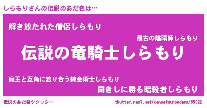 | 胡散臭い通販商品みたいなあだ名 | 『必ず成功するブレスレット…その名も「しらもり」』 |