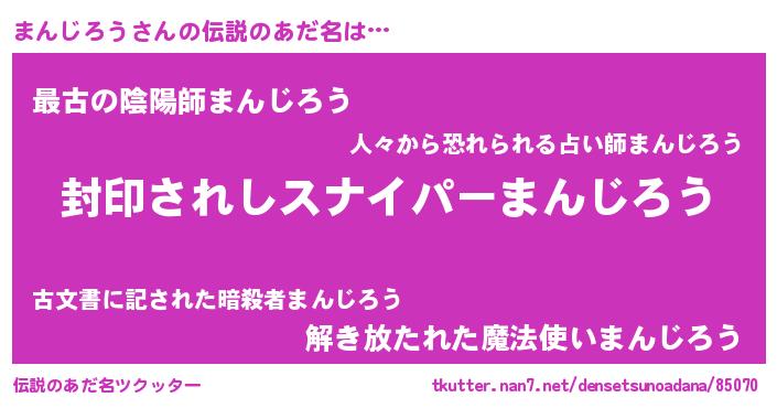 | 男性向けラノベタイトル風あだ名 | 『まんじろうに滅ぼされるだけの簡単なお仕事です』 |