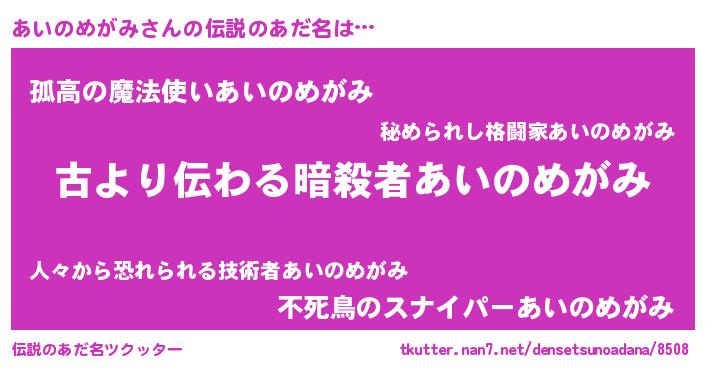 | 意味不明あだ名 | 『永久保存あいのめがみ』 |