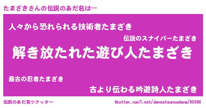 | ヘコむあだ名 | 『たまぷりん』『たまざき(小並感)』 |