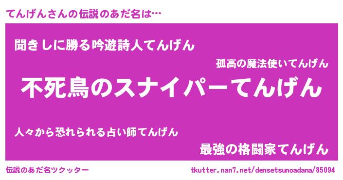 | 意味不明あだ名 | 『住所不定無職てんげん(79歳)』 |