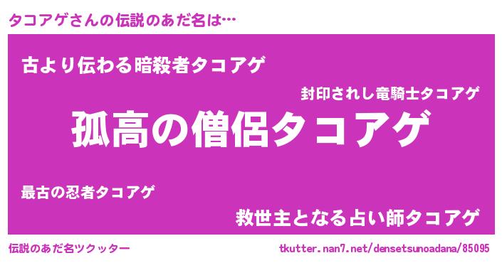 | 女子向けラノベタイトル風あだ名 | 『タコアゲは平凡を望む』 |