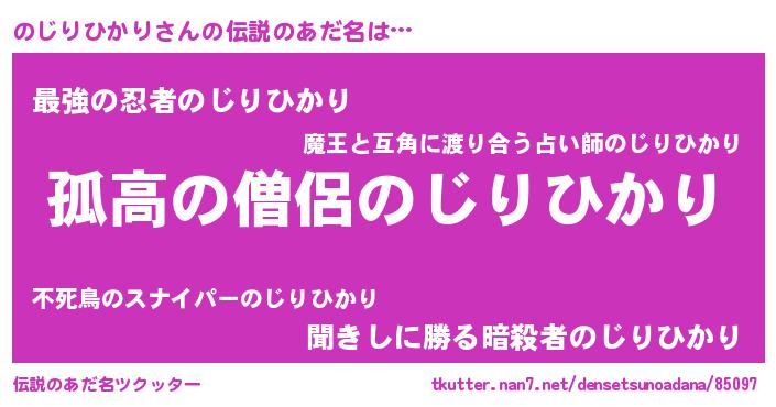 | 意味不明あだ名 | 『とにかく怪しいのじりひかり』 |