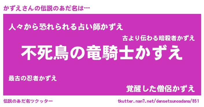 | 女子向けラノベタイトル風あだ名 | 『かずえ姫と円卓の騎士』『闇のかずえ』 |