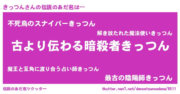 | 意味不明あだ名 | 『自称きっつん』『永久保存きっつん』 |