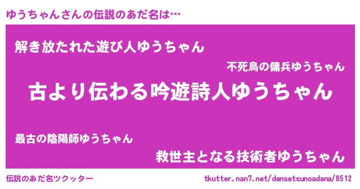 | 意味不明あだ名 | 『永久保存ゆうちゃん』『自称ゆうちゃん』 |