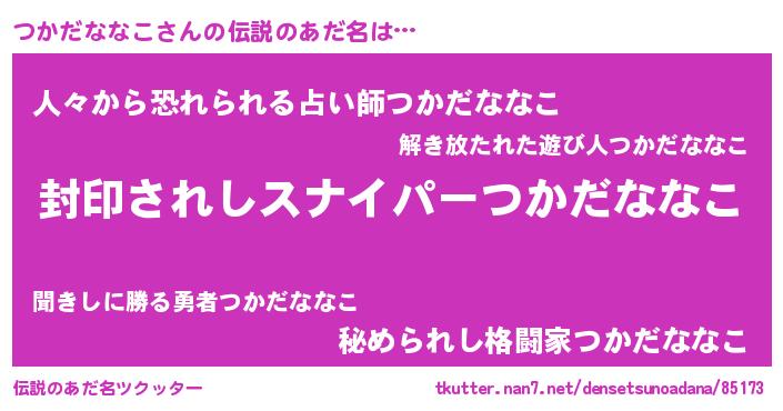 | ヒーロー風カッコイイあだ名 | 『スーパーツカダナナコ』『黄金騎士ツカ』 |