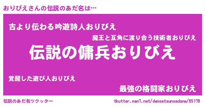 | 女子向けラノベタイトル風あだ名 | 『おりびえなんてお断りですっ。』 |