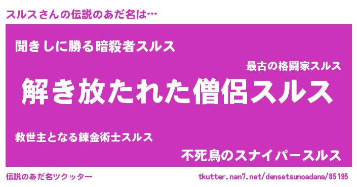 | 意味不明あだ名 | 『自称スルス』『とにかく怪しいスルス』 |