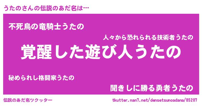 | ヒーロー風カッコイイあだ名 | 『究極戦士ウタノ』『魔戒騎士ウタ』 |