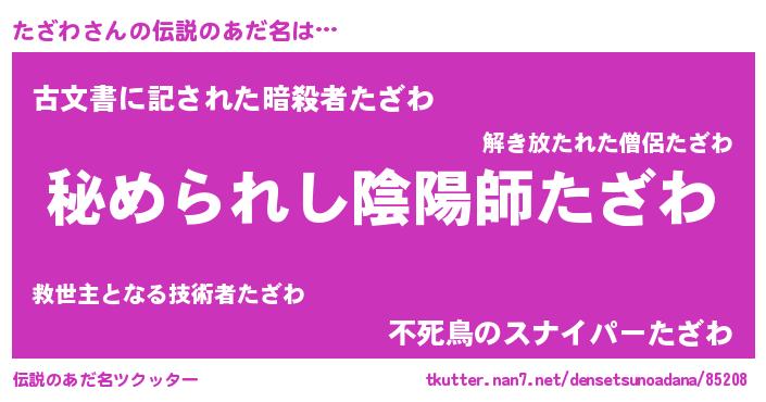 | 意味不明あだ名 | 『住所不定無職たざわ(85歳)』『自称たざわ』 |