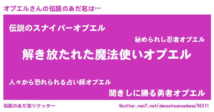 | 女子向けラノベタイトル風あだ名 | 『オプエルアンティーク』 |