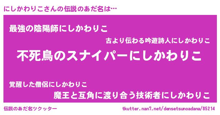 | 意味不明あだ名 | 『自称にしかわりこ』 |