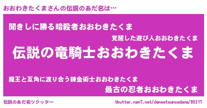 | ヒーロー風カッコイイあだ名 | 『スーパーオオワキタクマ』 |