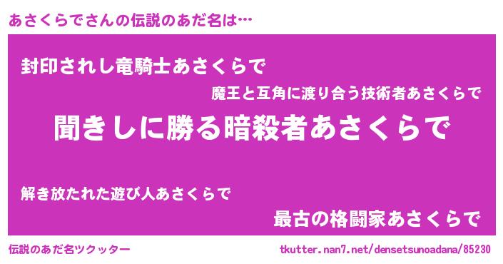 | 胡散臭い通販商品みたいなあだ名 | 『絶対に幸福をもたらす健康食品…その名も「あさくらで」』 |