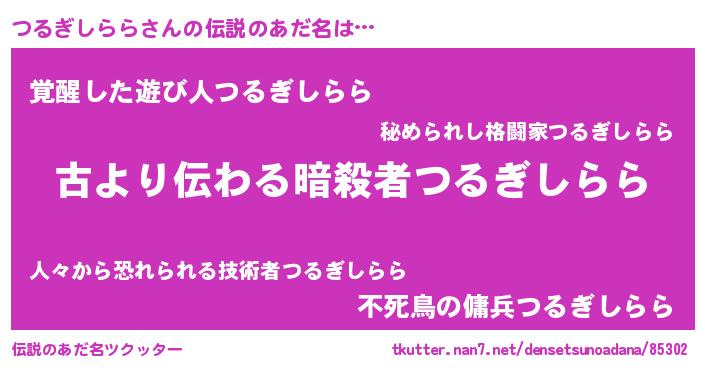| 意味不明あだ名 | 『永久保存つるぎしらら』 |