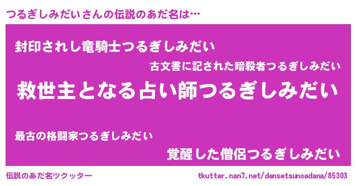 | 意味不明あだ名 | 『自称つるぎしみだい』 |