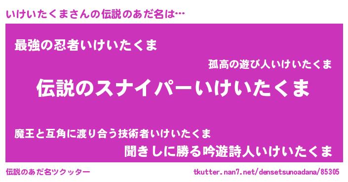 | 意味不明あだ名 | 『ペロリンいけいたくま』 |
