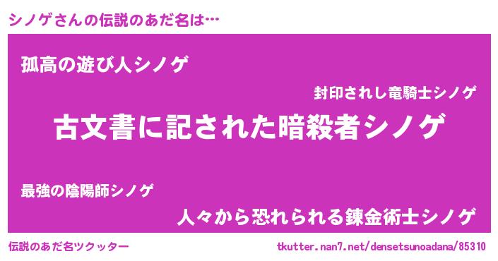 | ヒーロー風カッコイイあだ名 | 『仮面シノダー』『ネオシノゲ』 |