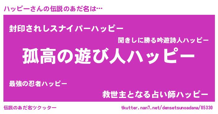 | ヒーロー風カッコイイあだ名 | 『黄金騎士ハッ』『スーパーハッピー』 |