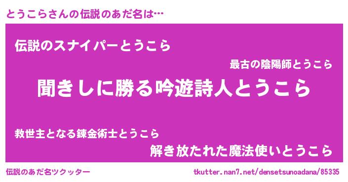 | 男性向けラノベタイトル風あだ名 | 『緋弾のトウコラ』『トウコラスレイヤー』 |