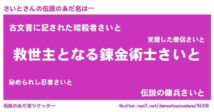 | ヒーロー風カッコイイあだ名 | 『慈愛の使者さいと』『仮面サイダー』 |