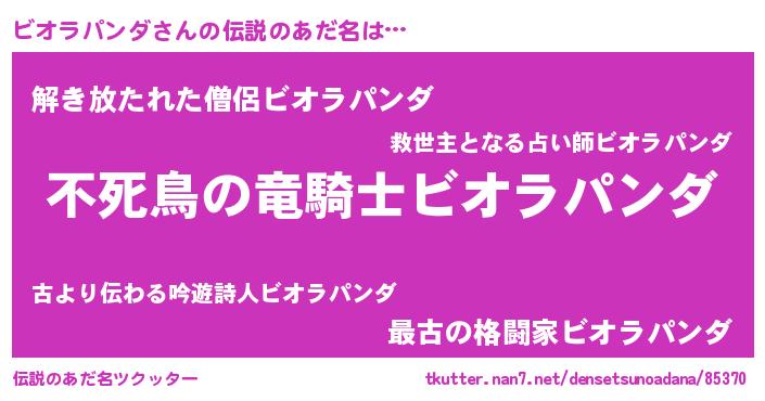 | ヒーロー風カッコイイあだ名 | 『スーパービオラパンダ』『幻影騎士ビオ』 |