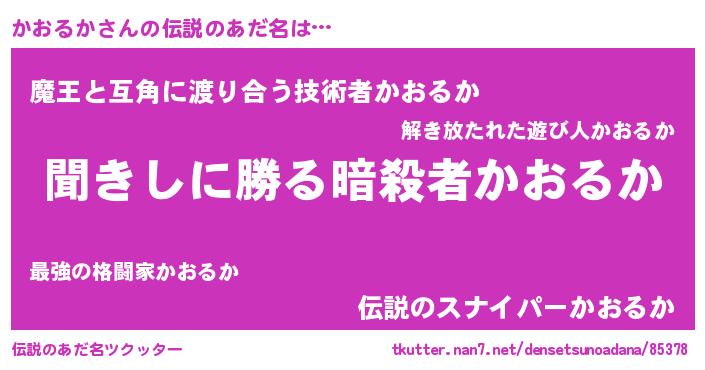 | 男性向けラノベタイトル風あだ名 | 『かおるかという概念が存在しない退屈な世界 』 |