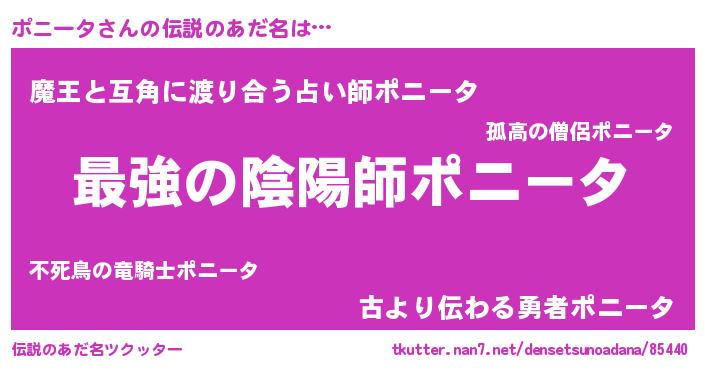 | ヒーロー風カッコイイあだ名 | 『ウルトラポニータマン』『ネオポニータ』 |
