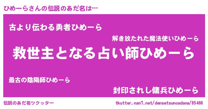 | ヒーロー風カッコイイあだ名 | 『仮面ヒメダー』『愛の使者ひめーら』 |