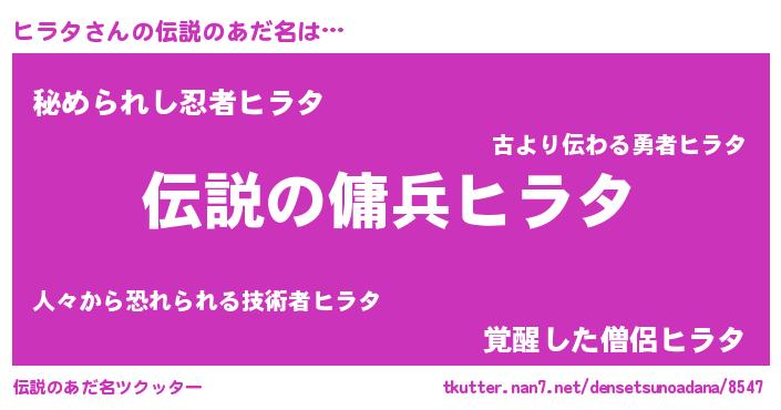 | 意味不明あだ名 | 『自称ヒラタ』『ペロリンヒラタ』 |
