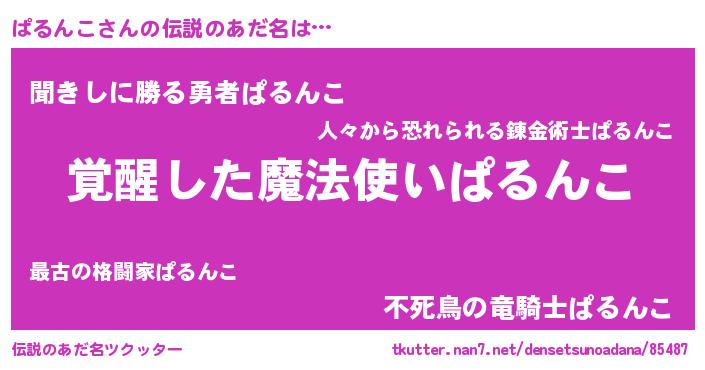 | 男性向けラノベタイトル風あだ名 | 『ぱるんこの嫁は女の子じゃないと思った?』 |