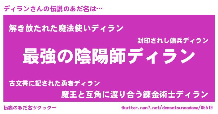 | 意味不明あだ名 | 『ディランフォーエバー』『自称ディラン』 |