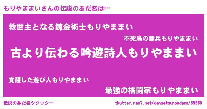 | 女子向けラノベタイトル風あだ名 | 『もりやままいの契約王妃』 |