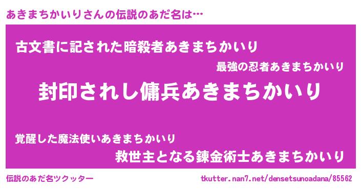 | 意味不明あだ名 | 『自称あきまちかいり』 |