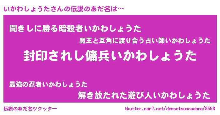 | 胡散臭い通販商品みたいなあだ名 | 『あなたにだけ特別に提供する限定10本のレアな日本酒…その名も「いかわしょうた」』 |