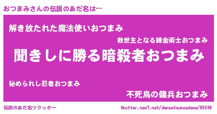 | 女子向けラノベタイトル風あだ名 | 『おつまみなんてお断りですっ。』 |