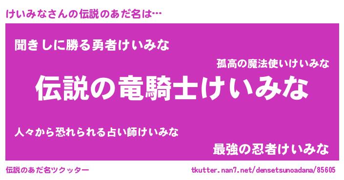 | 胡散臭い通販商品みたいなあだ名 | 『必ず成功するブレスレット…その名も「けいみな」』 |