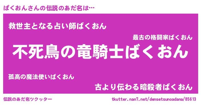 | 男性向けラノベタイトル風あだ名 | 『ばくおんの憂鬱』『魔弾の王とばくおん』 |
