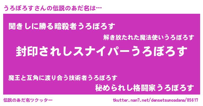 | 胡散臭い通販商品みたいなあだ名 | 『億万長者になれる霊験あらたかなお札…その名も「うろぼろす」』 |