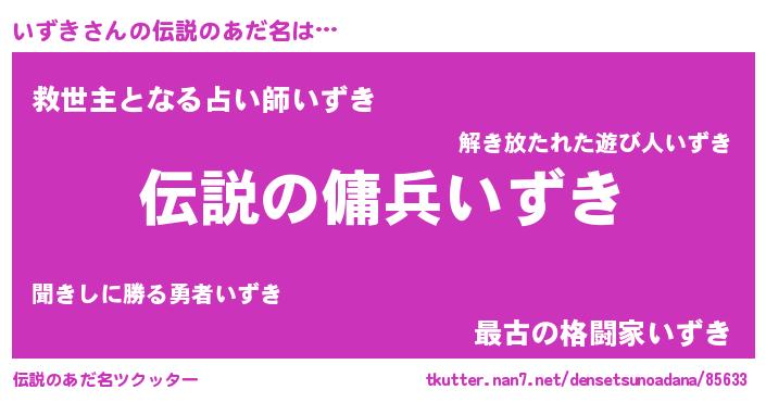 | 男性向けラノベタイトル風あだ名 | 『いずきの憂鬱』『イズキスレイヤー』 |