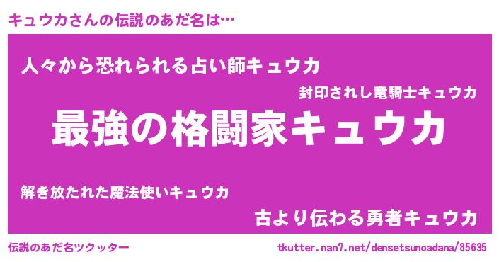 | 意味不明あだ名 | 『キュウカフォーエバー』『自称キュウカ』 |