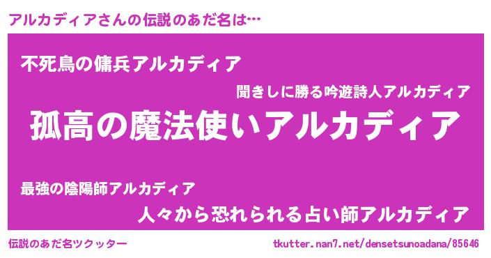| 意味不明あだ名 | 『とにかく怪しいアルカディア』 |