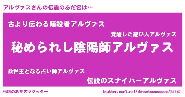 | 意味不明あだ名 | 『住所不定無職アルヴァス(71歳)』 |
