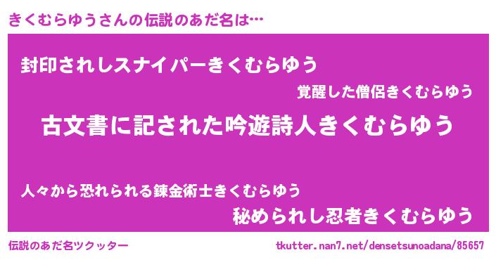 | ヘコむあだ名 | 『きくむらゆう(笑)』『きくっふぃ~』 |