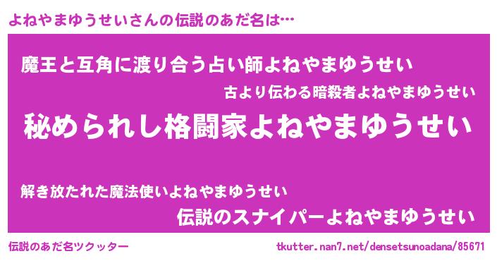 | 意味不明あだ名 | 『自称よねやまゆうせい』 |