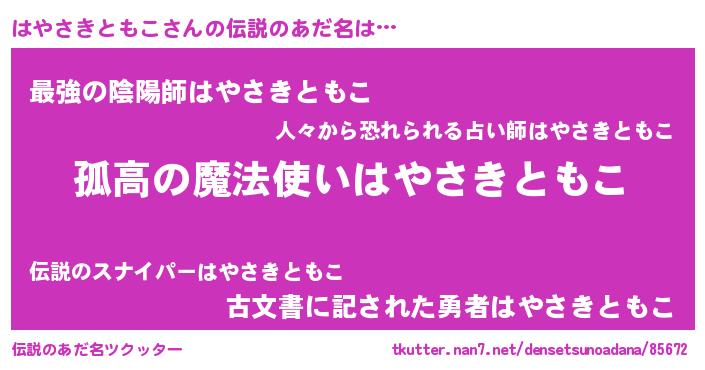| 男性向けラノベタイトル風あだ名 | 『魔法科高校のはやさきともこ』 |